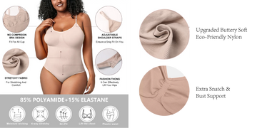 Our bodysuit provides targeted compression thatsmooths out unwanted bulgeswhile offering exceptionalsupport for your bust. The seamless design ensures a flattering silhouette, giving you the confidence to flaunt your curves.