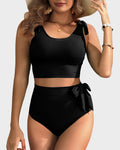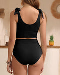 Double Tie Shoulder High Waist Tummy Control Bikini Set
