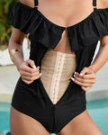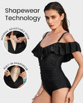 Drop-Shoulder Ruffled Zip-Front Shapewear Swimsuit