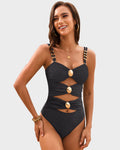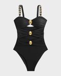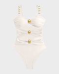 Gold Beads Detailing Cut-Out Ruched One Piece Swimsuit