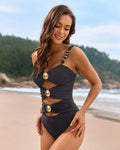 Adorned with stunning gold beads, this swimsuit adds a touch of glamour and sophistication, making it perfect for those who love to shine.Flattering Cut-Outs