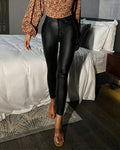 Step out with confidence in these sleek high-waist PU leather skinny pants that sculpt your figure while keeping you effortlessly chic. Designed for both comfort and style, they elongate your legs, flatter your curves, and bring that minimalist street-style edge to your everyday look. Perfect for fall and winter, these pants are your new wardrobe essential for casual outings, office wear, or nights out.