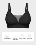 Tired of bras that dig, flatten, or feel restrictive? This ultra-light wireless bralette gives natural lift while keeping everything smooth, breathable, and invisible. Soft lace touches and cloud-soft fabric make it the effortless everyday piece that still feels sexy.