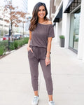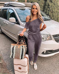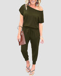 Off-Shoulder Short Sleeve Beam Foot Jumpsuit