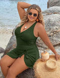 - Feature: Plus size swim dress for women designed with ruched detail, making you look slimmer. Besides, women swimsuits featured a v-neck, sleeveless, crisscross back, making you look more feminine and sexy.