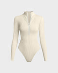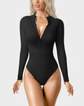 Ribbed Long Sleeve Half-Zip Shaping Bodysuit