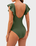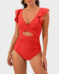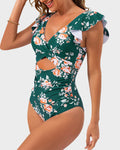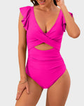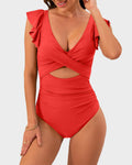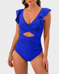 Ruffle Sleeve Cut-Out Ruched One-Piece Swimsuit