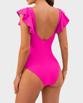 Introducing the Ruffle Sleeve Cut-Out Ruched One-Piece Swimsuit, a stylish and playful choice that combines feminine flair with modern design. This swimsuit is perfect for making a statement during your beach or pool outings.