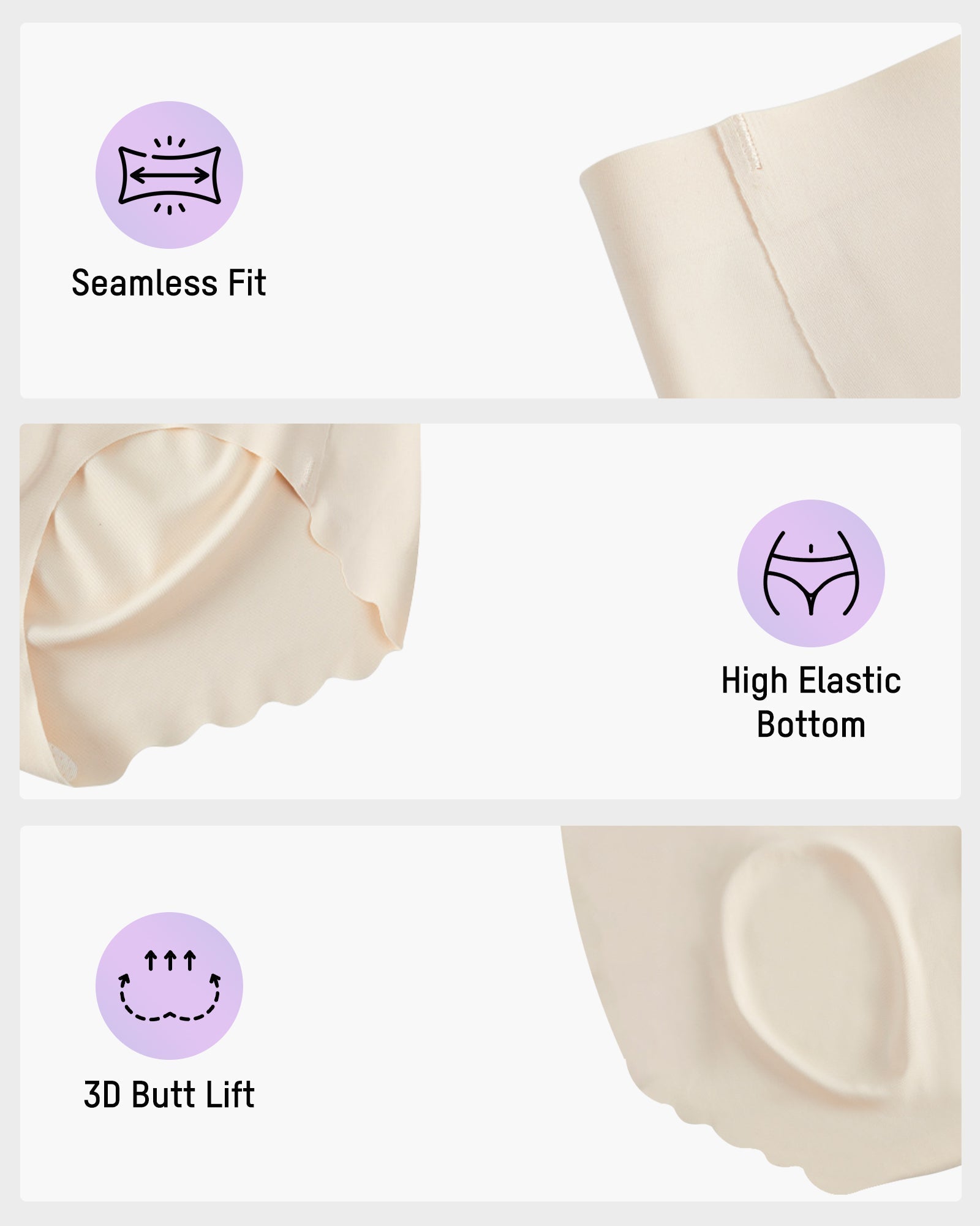 Made with premium 7A silk for natural antibacterial protection, paired with a breathable latex layer for moisture control. Keeps you fresh, dry, and irritation-free all day long.Butt-Lifting 3D Fit