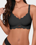 Enjoy full support without the squeeze. The wireless design lifts naturally while staying unbelievably soft and flexible.Laser-Cut Scalloped Edges