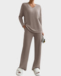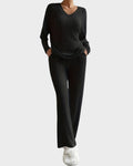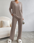 A chic V neckline adds a subtle touch of femininity and sophistication, making this set perfect for lounging or casual outings.