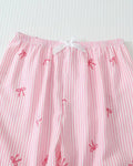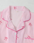 Fall asleep in style and wake up feeling sweetly refreshed. This striped bow pajama set blends classic tailoring with an irresistibly cute print, giving your nighttime look a playful yet polished vibe. Soft, breathable, and just the right weight for all seasons — it’s your year-round favorite for cozy nights and slow mornings.