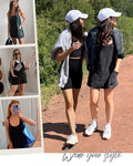 Introducing the Casual Sleeveless Mini Dress with Built-In Shorts, the perfect blend of style and functionality for your active lifestyle. This versatile dress is designed to keep you comfortable and chic whether you're hitting the gym, running errands, or enjoying a day out.