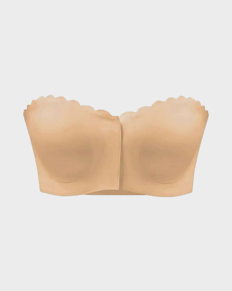 Introducing the scalloped neckline strapless bra, a perfect blend of elegance and comfort designed for the modern woman. With its unique scalloped edge, this bra adds a touch of sophistication to your lingerie collection while ensuring a secure fit. Ideal for wearing under a variety of outfits, from off-the-shoulder tops to elegant dresses, this bra provides a seamless silhouette that enhances your natural shape without compromising on support.